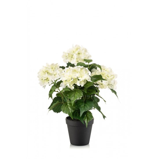 ufa artificiala Hortensie (Hydrangea), alb/verde, 40 cm, ghiveci negru