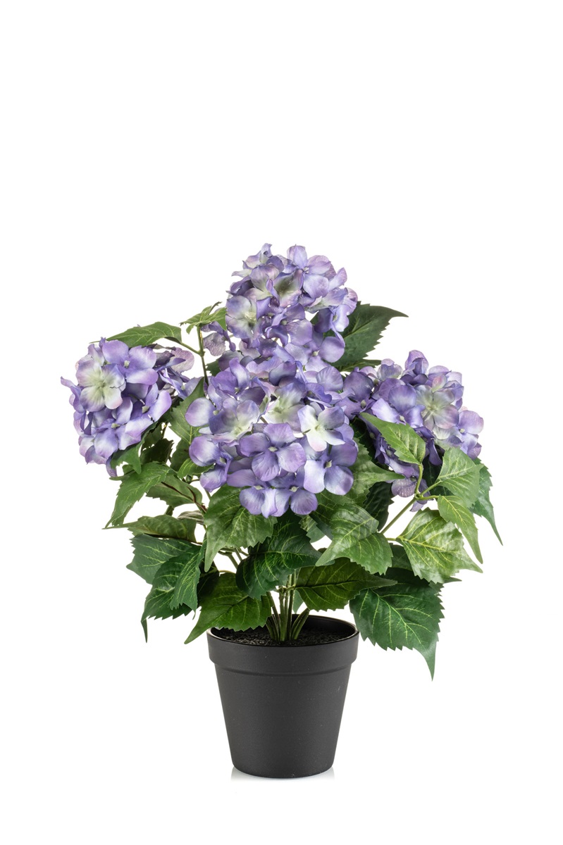 Tufa artificiala Hortensie (Hydrangea), mov, 40 cm, ghiveci negru