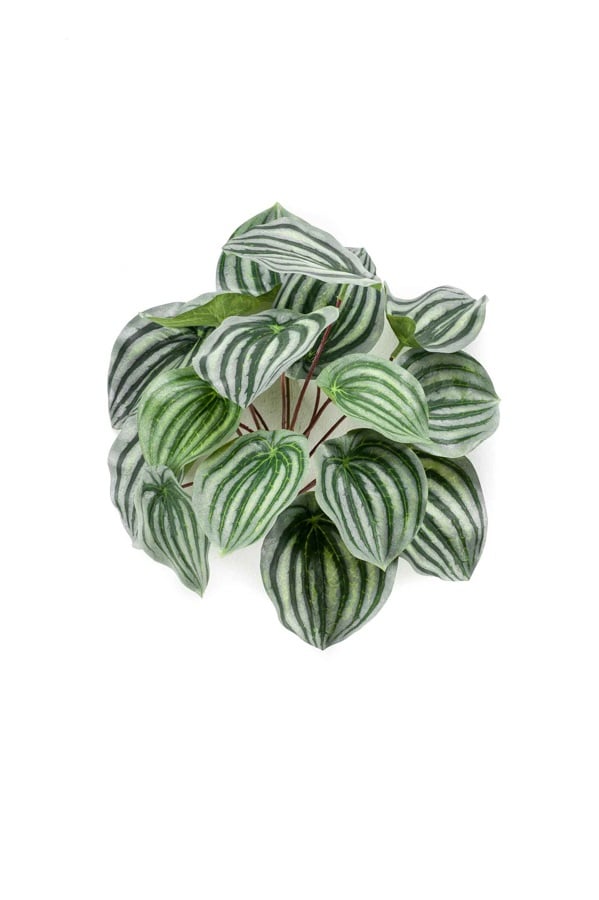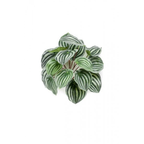 Aceasta Peperomia artificiala de 25cm are frunze in tonuri de verde si gri, conferind eleganta si rafinament. Este realizata din mase plastice si se integreaza usor in decoruri moderne, minimaliste sau naturale.