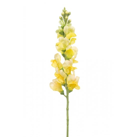 Gura-leului artificiala galbena, ramura de 78 cm, este o floare decorativa vibranta si eleganta, ideala pentru aranjamente florale, buchete spectaculoase sau decoruri interioare colorate. Cunoscuta si sub denumirea de antirrhinum, aceasta floare artificiala decorativa impresioneaza prin florile sale delicate si aspectul natural, aducand prospetime si luminozitate in orice spatiu. Ramura artificiala galbena poate fi folosita in combinatii cu alte flori artificiale pentru buchete, vaze sau decoruri tematice pentru casa, birou, restaurante sau evenimente speciale. Planta decorativa artificiala nu necesita intretinere si isi pastreaza frumusetea pe termen lung. Realizat din mase plastice.