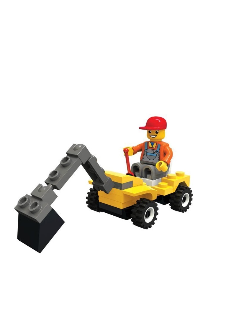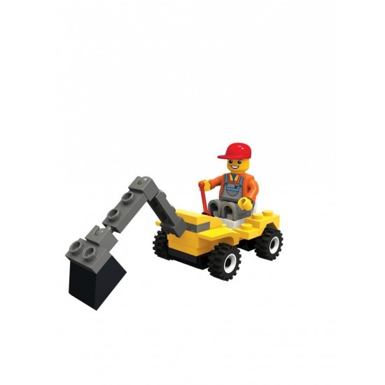 Masina este insotita de o minifigurina constructor cu casca si uniforma specifica ce poate fi asezat pe scaunul soferului.