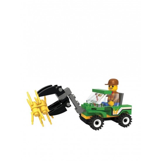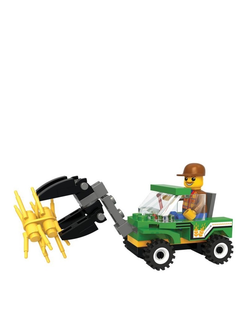 Setul include piese cu ajutorul carora se construieste un mini tractor cu freza. In cabina tractorului poate fi asezata minifigurina fermier inclusa.