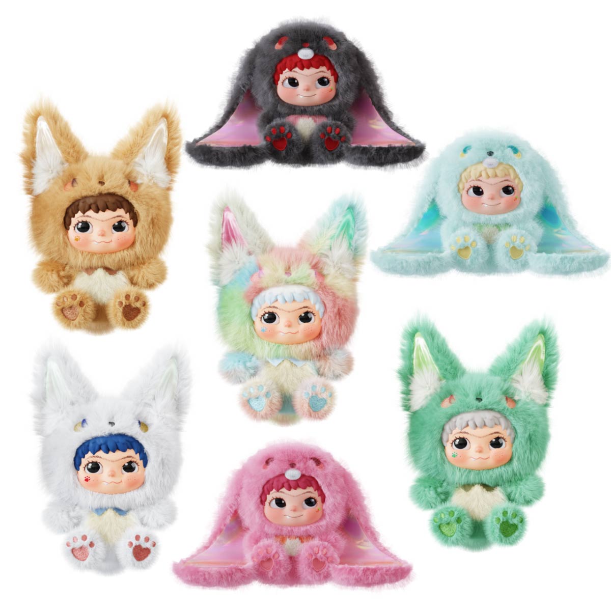 In serie sunt 8 personaje, dintre care 2 rare. Poti descoperi Cute Fox, Sweetheart Fox, Cool Fox, Cute Bunny, Sweetheart Bunny, Cool Bunny, Fantasy Fox (rar) si Fantasy Bunny (rar). Jucaria se afla intr-o capsula surpriza, ceea ce adauga si mai mult suspans descoperirii. Fiecare personaj vine impreuna cu un card de colectie si are un aspect super kawaii, realizat sub forma de vulpita sau iepuras. Fetele sunt confectionate din PVC, cu ochi "de sticla" ce ofera un efect aparte, iar inelul inclus permite atasarea jucariei la geanta sau alte accesorii.