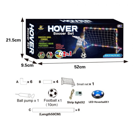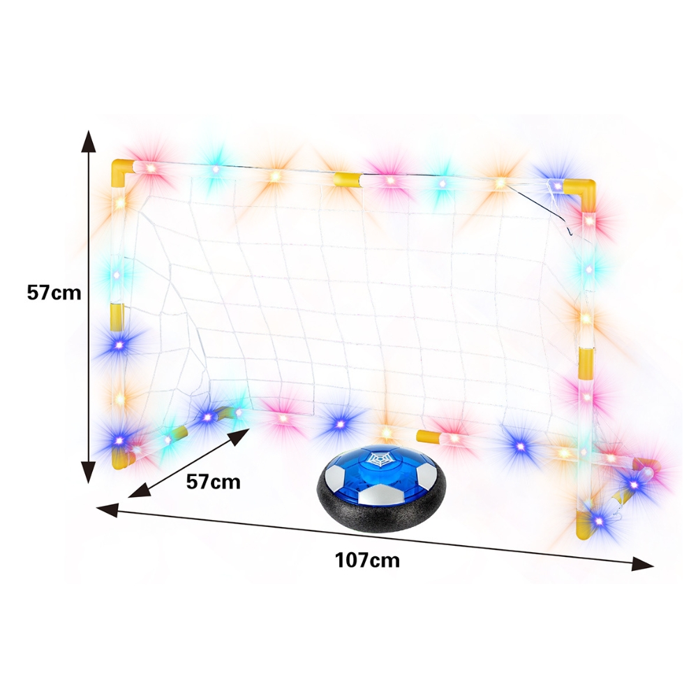 Poarta de fotbal LED cu minge plutitoare aduce un plus de distractie si tehnologie jocurilor de fotbal pentru copii. Setul include o poarta de fotbal dotata cu lumini LED, care se aprind si se schimba pe masura ce mingea atinge poarta, adaugand un efect spectaculos jocului.