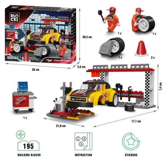 Faceti cunostinta cu setul Blocki, Racing Car Service.