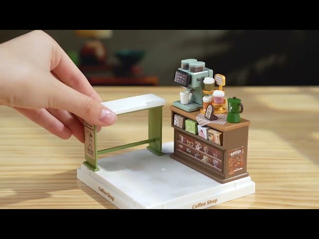 Asambleaza pas cu pas elementele si construieste un spatiu autentic de cafenea, cu tejghea, zona de preparare a cafelei, rafturi si accesorii tematice. Miniatura include detalii realiste precum espressor, cesti, recipiente pentru bauturi si elemente decorative care redau perfect atmosfera unei cafenele moderne si primitoare.