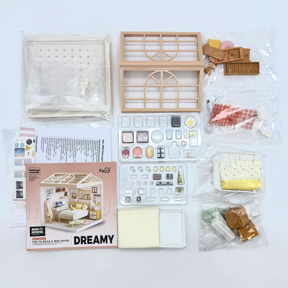 Creeaza un spatiu relaxant si plin de confort cu setul MINI HOUSE - Interior "Dormitor"! Acest constructor tip roombox este ideal pentru pasionatii de miniaturi si proiecte DIY, oferind posibilitatea de a realiza un dormitor detaliat intr-un box transparent cu acoperis.