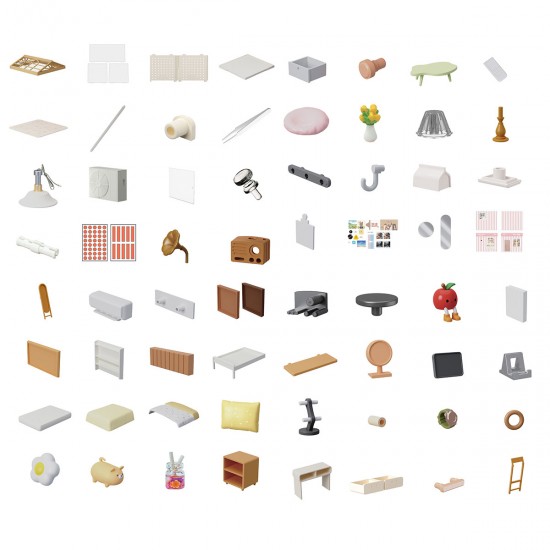 Setul poate fi combinat cu alte incaperi din seria MINI HOUSE, permitand crearea unei case in miniatura sau a unor compozitii pe mai multe niveluri, atat pe verticala, cat si pe orizontala.