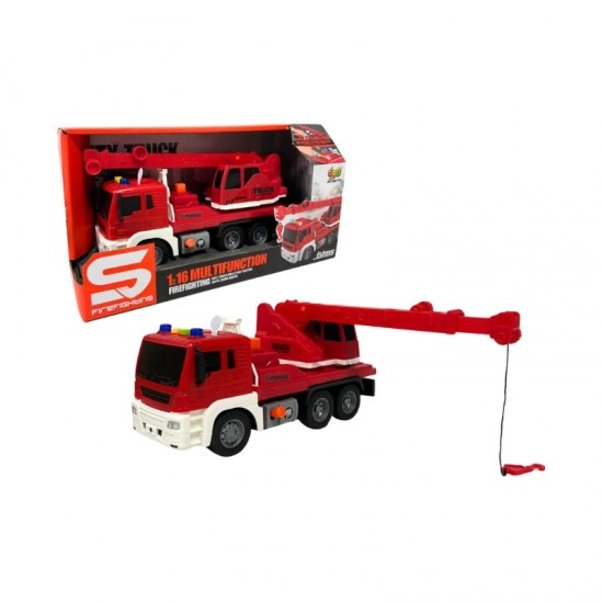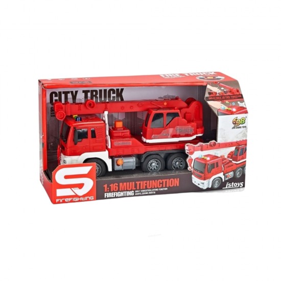 Camion macara rosu cu frictiune, buton presiune, sunete si lumini, 1:16, JSTOYS, ZJA278622