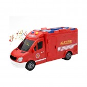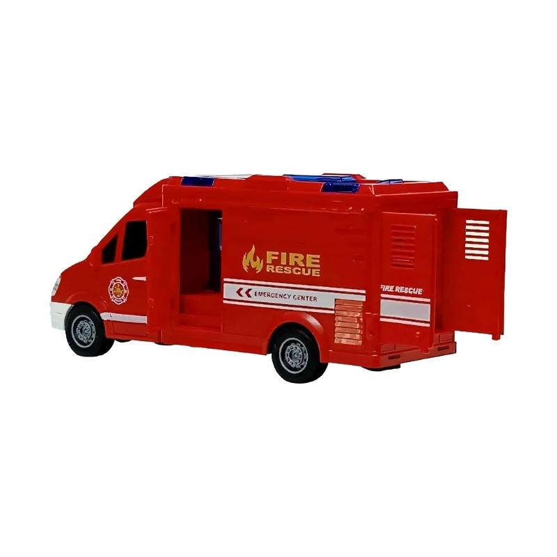 Microbuz rosu ambulanta cu frictiune si usi care se deschid, sunete si lumini, 1:16, JSTOYS, ZJA329911