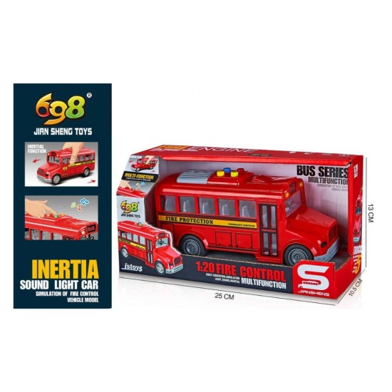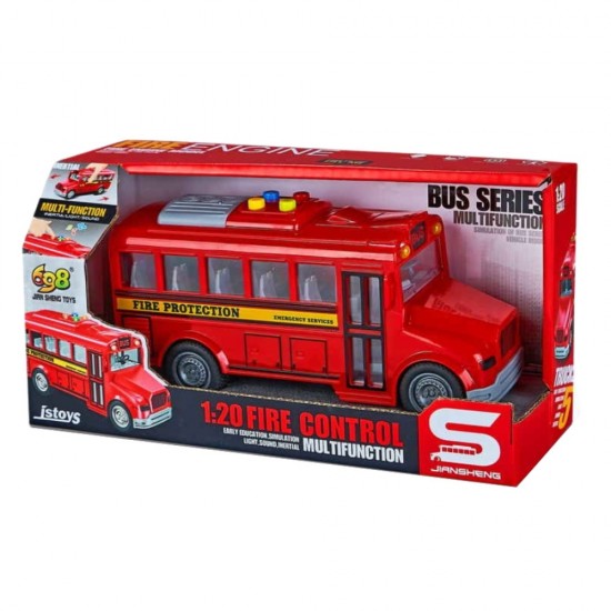 Autobuz scolar rosu cu sunete si lumini, 1:20, jstoys, ZJA364047