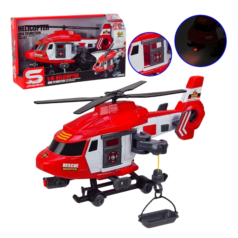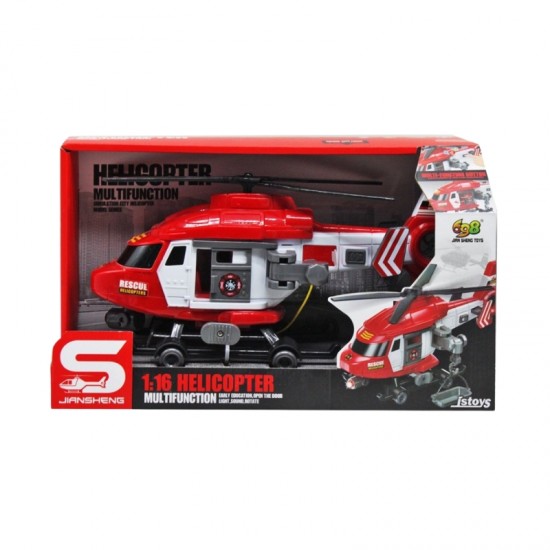 Elicopter rosu, cu inertie, sunete si lumini, 1:16, JSTOYS, ZJA329913