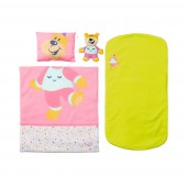 Un patut cu un baldachin minunat si asternuturi dragute cu o imagine a ursului Bruno. Datorita saltelei cu sunet, cand vei adormi papusa, ea va incepe sa fie capricioasa si sa planga ca un bebelus adevarat! Dar daca asezi ursuletul Bruno langa ea, se va linisti rapid si va adormi.