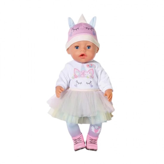 Papusa bebelus Baby Born, hainute Unicorn, 36 cm, bea din sticluta, face pipi si plange