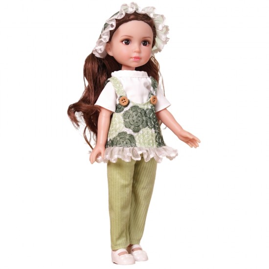 Papusa bruneta 35 cm cu bluza si pantaloni verzi, ZJA353023