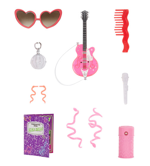 Papusa este decorata cu elemente de neon, al caror design va aparea sub lumina "neagra". Lumineaza cu lanterna surpriza din set si admira modelul ei secret!