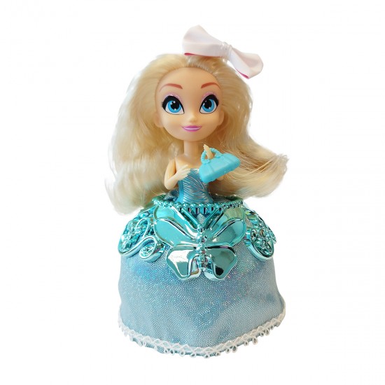 Setul include o papusa sticla si accesorii: geanta de mana, bijuterii, fundita de par, pieptene.