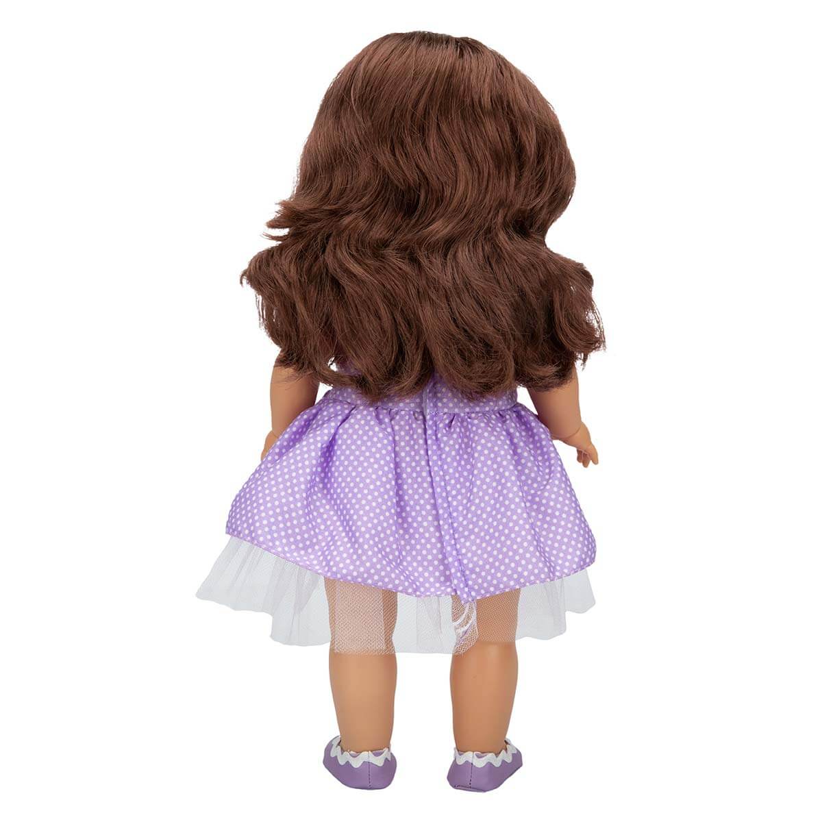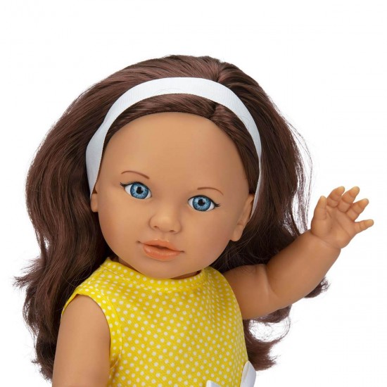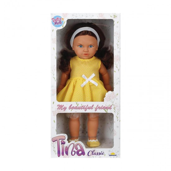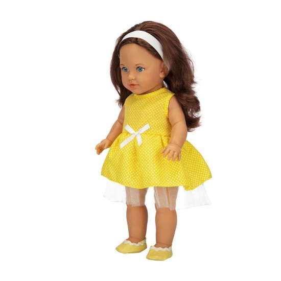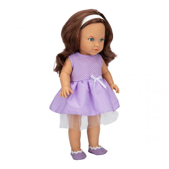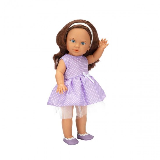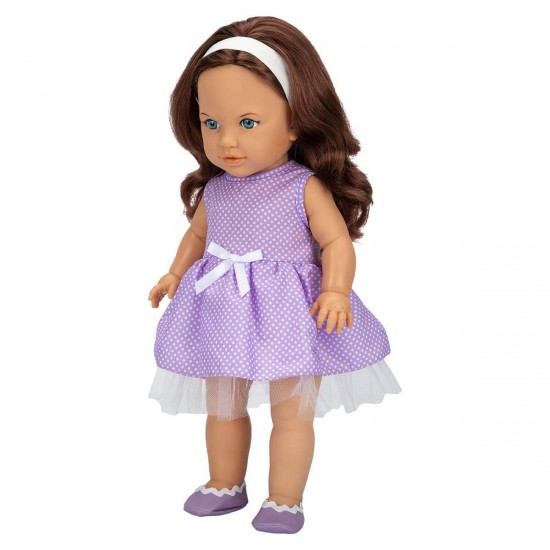 Papusa Tina in tinuta de petrecere, Dollz n More, 45 cm 2 tipuri, cu rochie violeta sau galbena