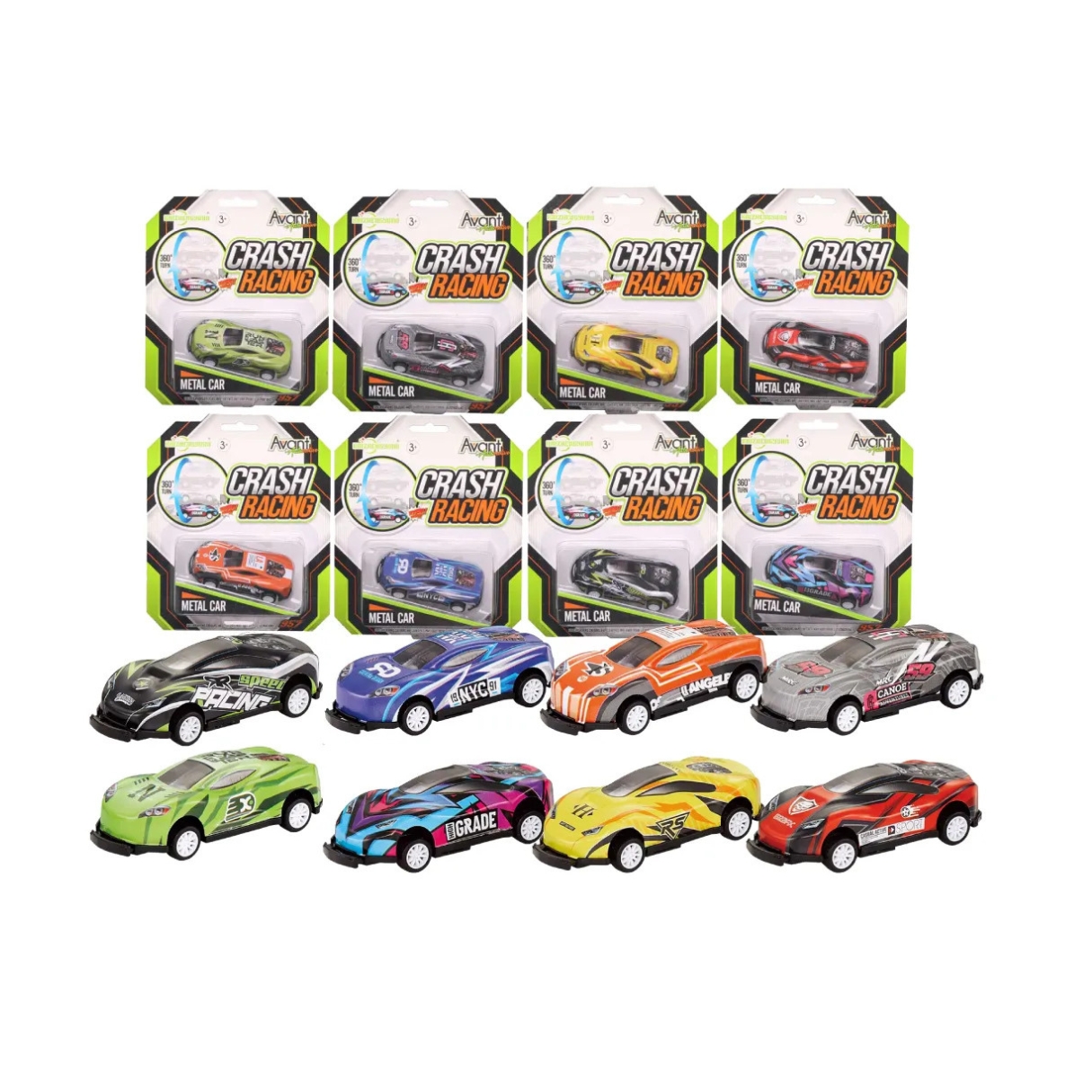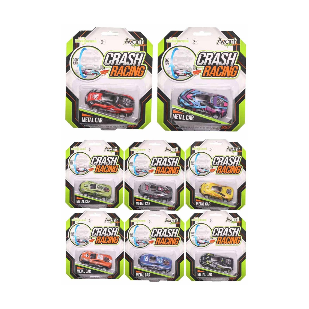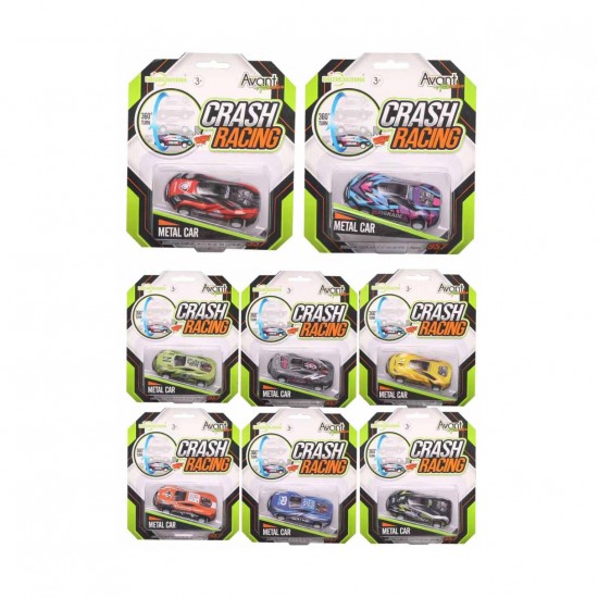 Jucarie masina din metal cu mecanism pull-back Crash Racing in asortiment, Salt lateral,