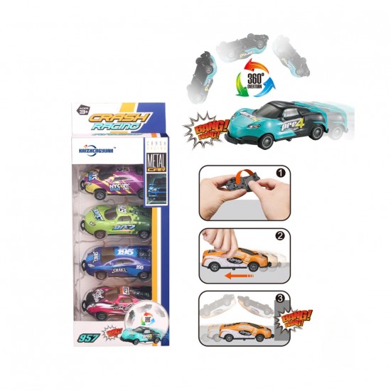Set cu 4 masini din metal, functie salt in fata, diverse modele
