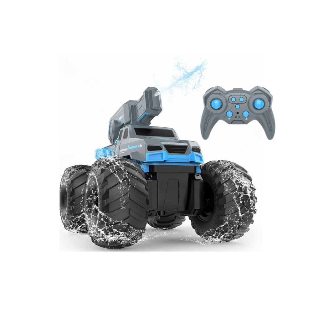 Acesta este un vehicul de jucarie controlat de la distanta cu un design robust si capabil sa faca fata diferitelor suprafete, inclusiv cele umede. In partea superioara, vehiculul are un tun care pulverizeaza apa.