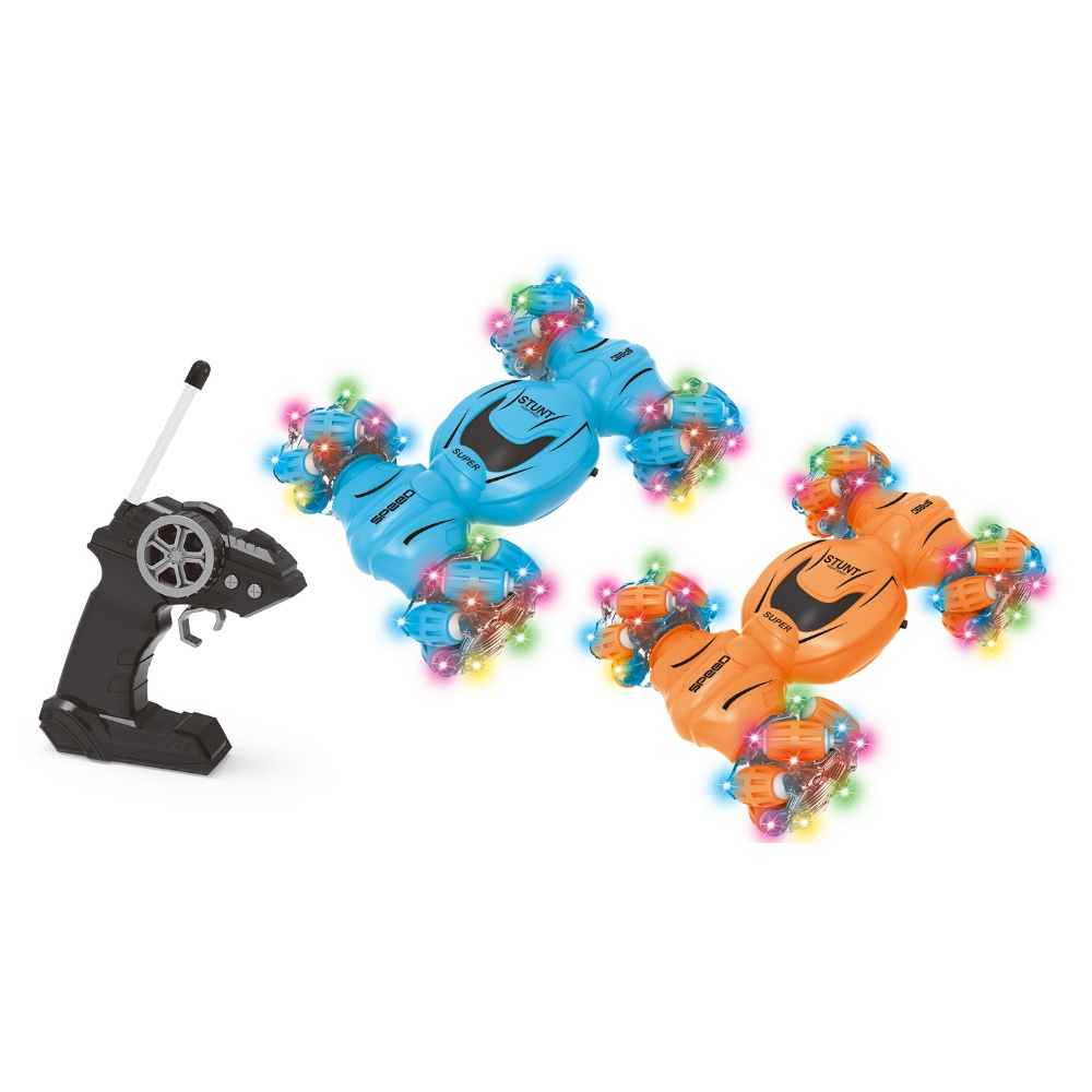 Masinuta 4-drive Stunt Drift Car este o jucarie spectaculoasa, perfecta pentru micii pasionati de cascadorii si distractie! Datorita tehnologiei 2.4G, telecomanda permite controlul precis al masinii, care poate efectua miscari spectaculoase si acrobatii datorita designului sau inovativ. Masina este echipata cu lumini vibrante care adauga un efect vizual impresionant, iar rotile sale speciale ii permit sa faca acrobatii si miscari spectaculoase, transformand fiecare joaca intr-o adevarata provocare.