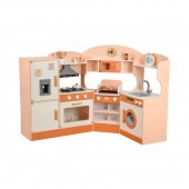 O bucatarie eleganta si detaliata, ce ofera un spatiu generos, perfect pentru micii bucatari care adora sa creeze propriile povesti in bucatarie. Aceasta bucatarie este dotata cu frigider, masina de spalat, microunda, hota si multiple elemente si accesorii interactive, care ofera o experienta realista si plina de imaginatie. Acest set stimuleaza creativitatea, imaginatia si abilitatile de comunicare.