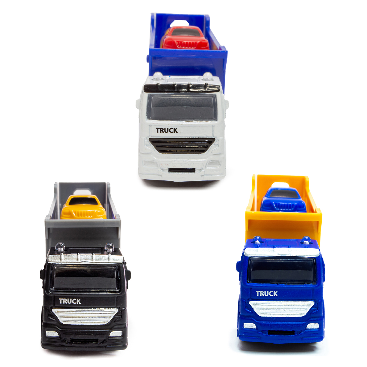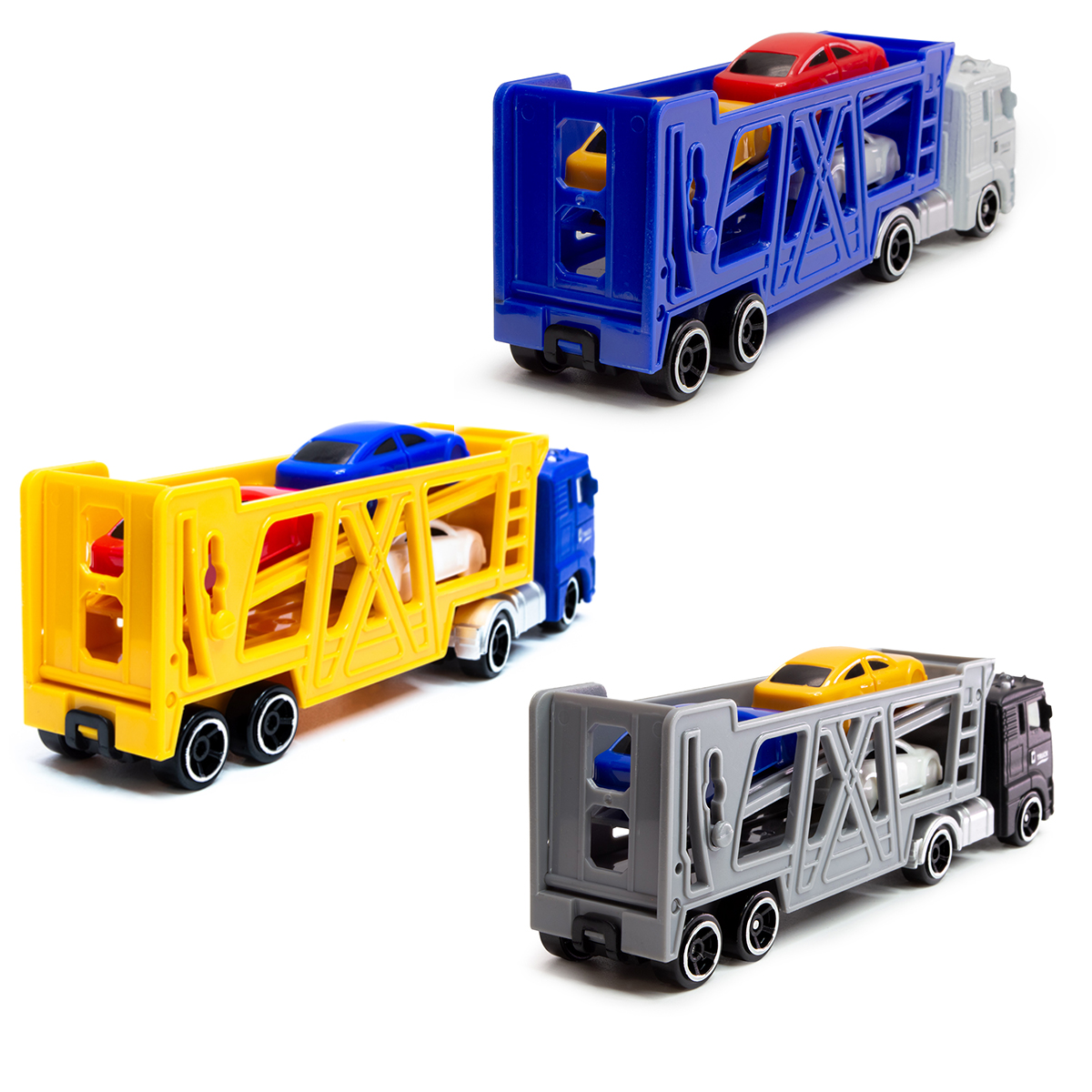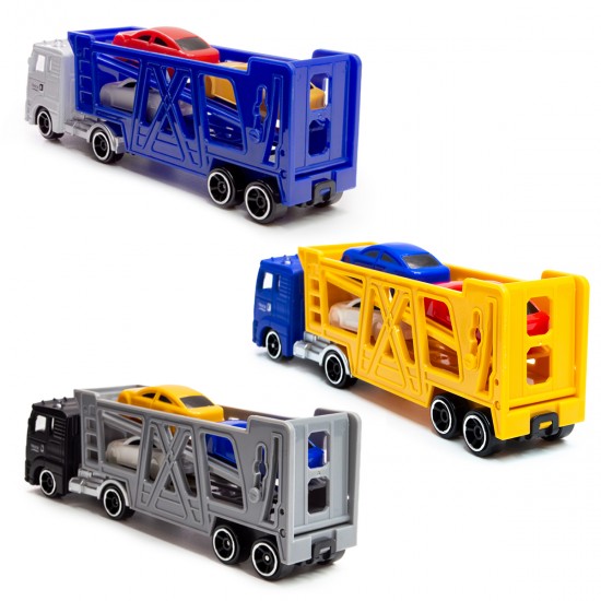 Macheta Camion transportor de masini in cutie din plastic TechnoDrive (3 modele)