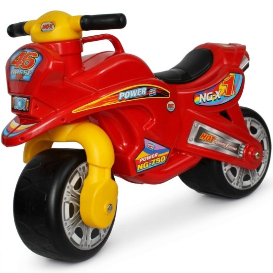 Motocicleta are dimensiuni aproximative de 68x25x50 cm, oferind confort si usurinta in utilizare pentru copiii cu varsta intre 1 si 3 ani. Constructia stabila si rotile rezistente contribuie la siguranta in timpul deplasarii, iar materialul din plastic durabil asigura o utilizare indelungata.