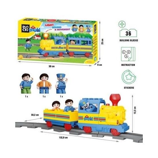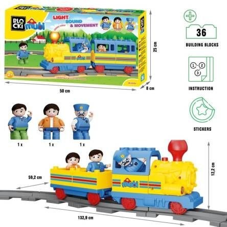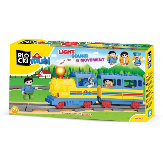 Set blocuri Tren cu sunete si lumini 36 el. Blocki Mubi Tom's Happy Train