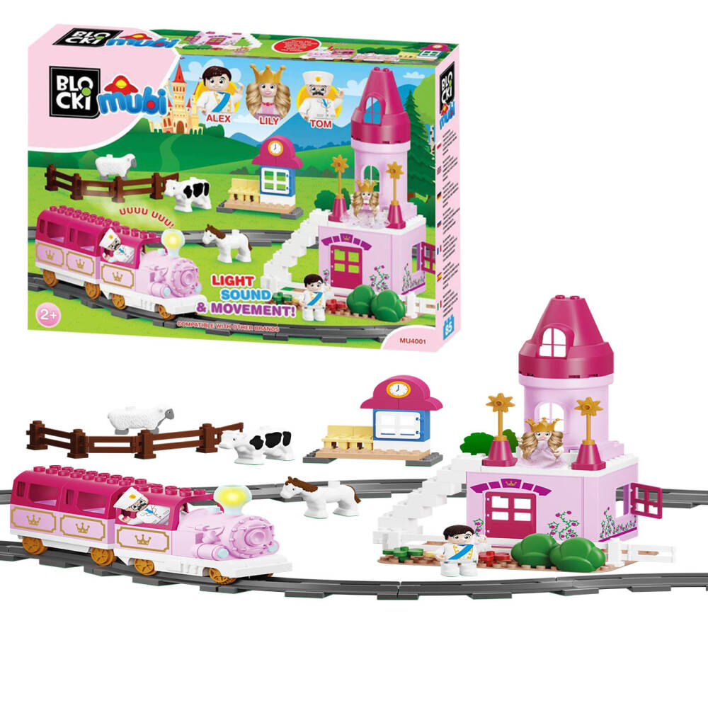 Set blocuri Castelul Printesei Lily Tren si Cale ferata cu sunete si lumini 85 el. Blocki Mubi