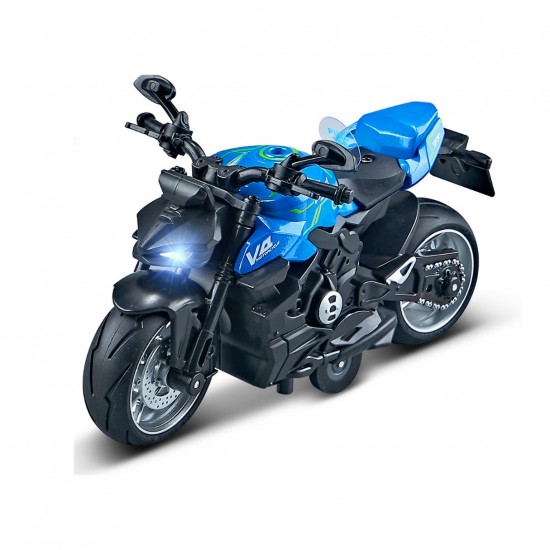 Completeaza-ti colectia de motociclete cu acest model uimitor. Aspectul motorului este rafinat cu cea mai mare precizie. Unitatea cu tragere inapoi permite o distractie incredibila. Doar trage jucaria inapoi, eliberiaza-o si urmareste cum porneste singura inainte. Avantajul acestui model sunt efectele luminoase si sonore, apasand vehiculul la sol, vei activa luminile din fata care vor lumina drumul si sunetele claxonului si ale motorului in timpul conducerii. Motocicleta a fost realizata la scara 1:12.