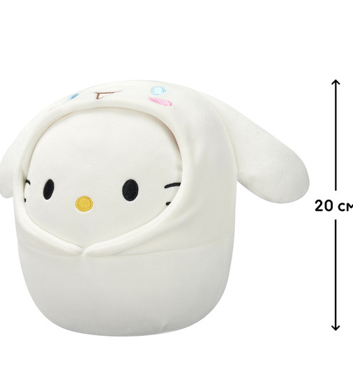 Jucarie de plus 20 cm, Hello Kitty in costum Cinnamoroll, Squishmallows