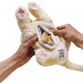Cainele are catei in burta. Trebuie doar sa deschizi partea inferioara a jucariei si sa ii scoateti.