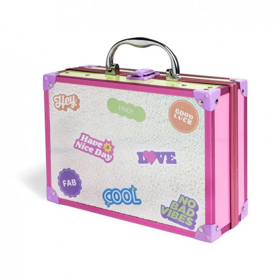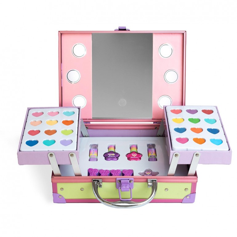 Setul contine o gama variata de cosmetice, precum luciuri de buze, farduri colorate pentru ochi, perle de obraz si pensule, toate concepute cu formule delicate si sigure pentru pielea sensibila. In plus, trusa este prevazuta cu lumina LED integrata, pentru o aplicare usoara si distractiva in orice moment, oferind lumina adecvata pentru detalii precise.
