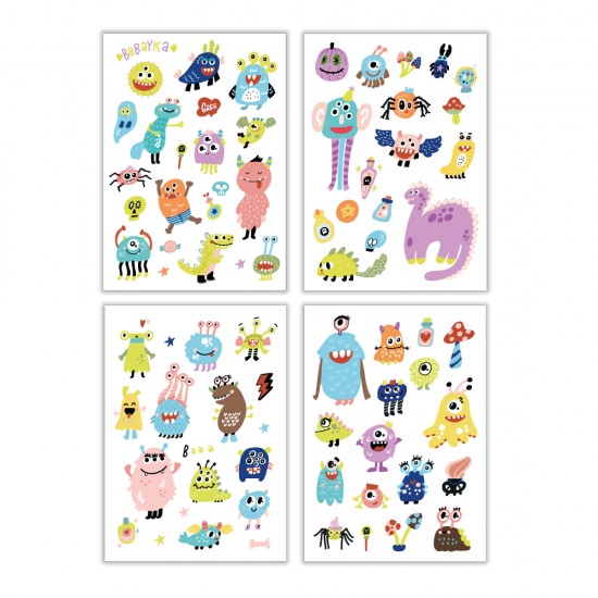 Set tatuaje temporare, 4 foi, Monstri la Petrecere