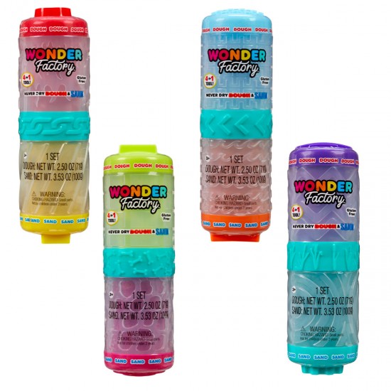 Set pasta de modelat si nisip kinetic care nu se usuca, in tub texturat cu capac, cu miros placut, Wonder Factory (diverse culori)