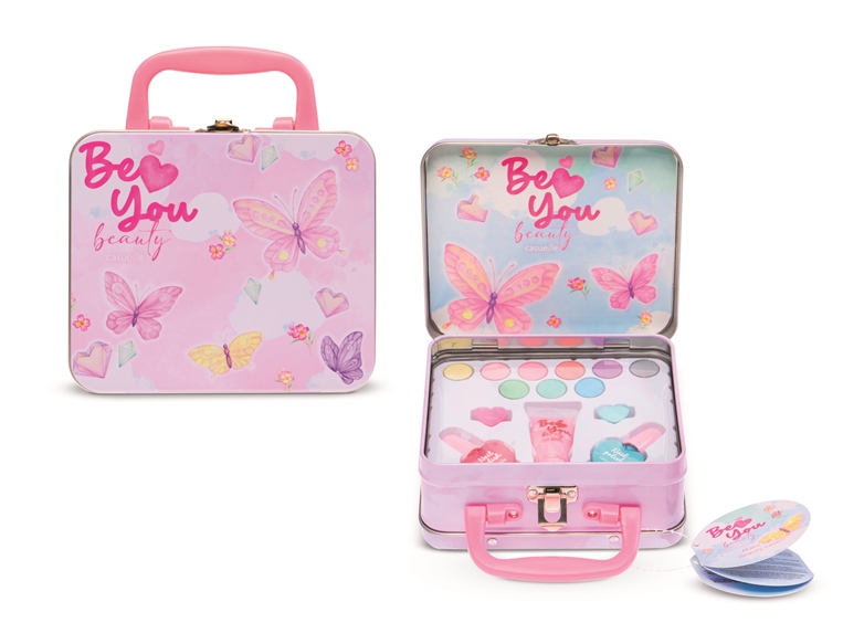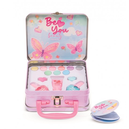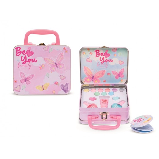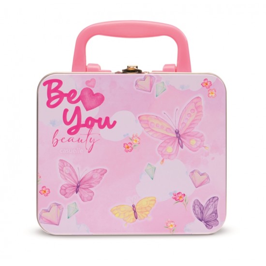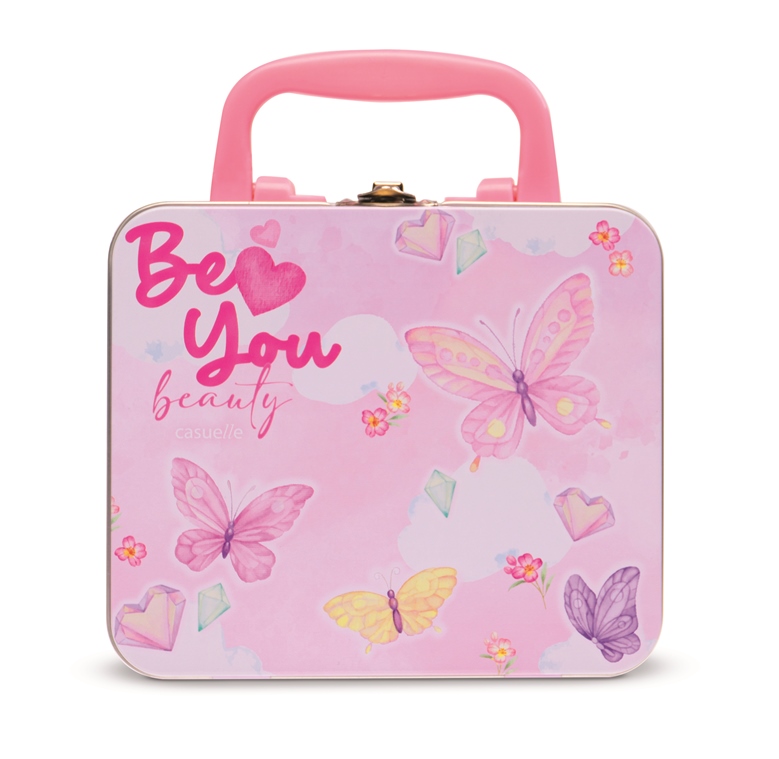 Simte-te speciala cu aceasta trusa de machiaj super draguta in cutie metalica. Vei avea parte de toate cele necesare pentru at-ti crea un machiaj perfect pentru un look si mai atragator. Alege care culoare ti se potriveste si nu ezita sa realizezi noile tale idei.