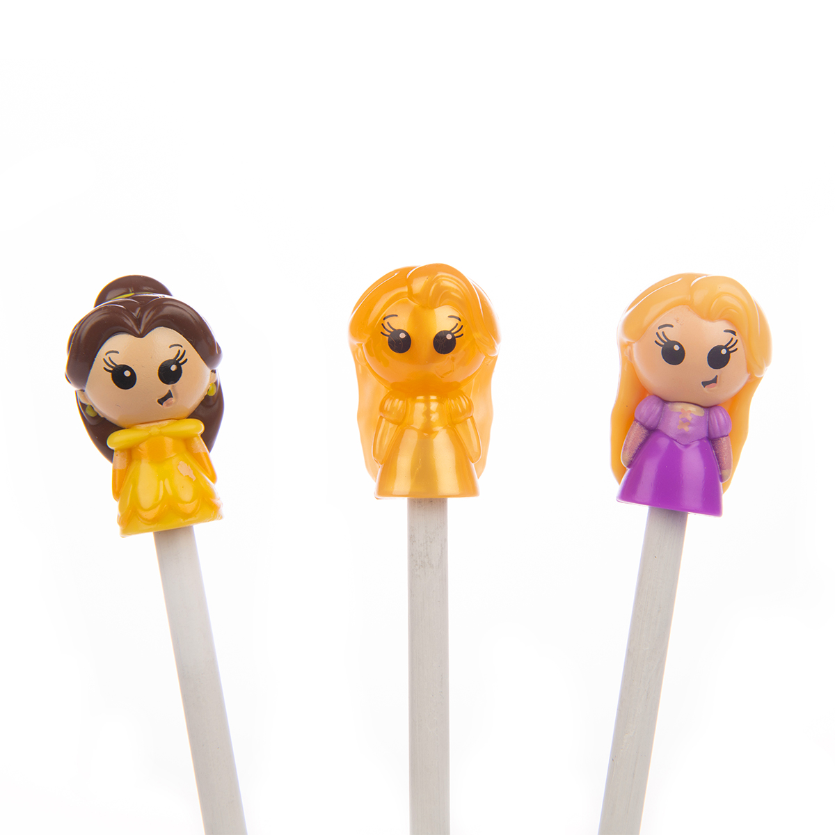 Faceti cunostinta cu printesele voastre preferate din universul Disney! Topperurile colorate "Bop n Tops" adauga creativitate si distractie scrisului sau sarcinilor de zi cu zi. Figurinele pot fi puse pe un creion sau pix. Alege ce printesa iti place cel mai mult?