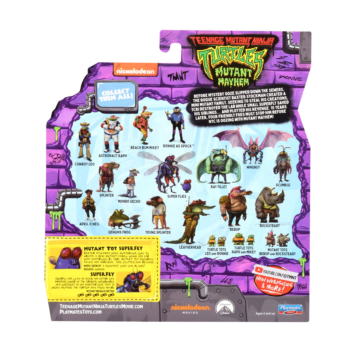 Descopera lumea eroilor si a mutantilor din universul "Testoasele Ninja Mutante"! Inspirate din filmul animat, figurinele TMNT aduc in prim-plan confruntarea cu raufacatorul Superfly. Inainte ca misteriosul lichid mutant sa ajunga in canalizare, savantul Baxter Stockman a creat o mini-armata de mutanti. Dupa 15 ani, Superfly planuieste razbunarea, iar testosele ninja trebuie sa-l opreasca inainte ca New York-ul sa fie invadat!