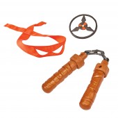 Setul contine: nunchaku, bandana de legat la ochi, shuriken
