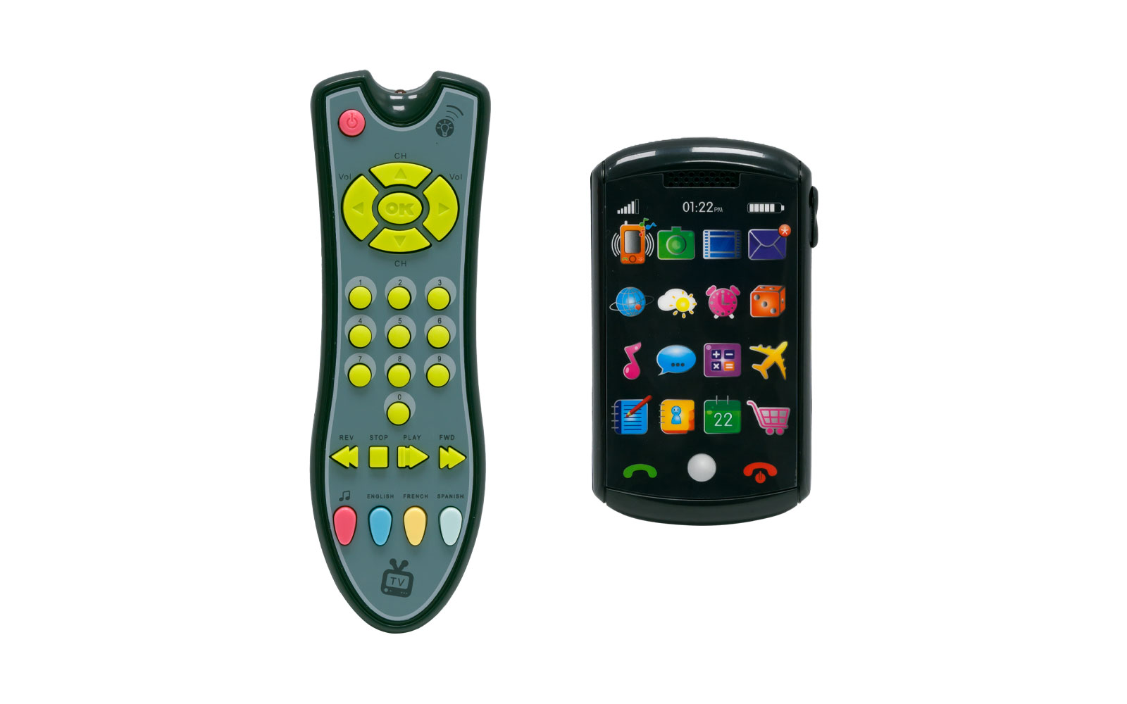 Capteaza atentia copilasilor cu acest set de telefon si telecomanda. Telefonul are diverse efecte de sunet si lumina si functioneaza cu 2 baterii AAA LR03 de 1,5V. Telecomanda are diverse efecte de sunet si lumina si functioneaza cu 2 baterii AAA LR03 de 1,5V