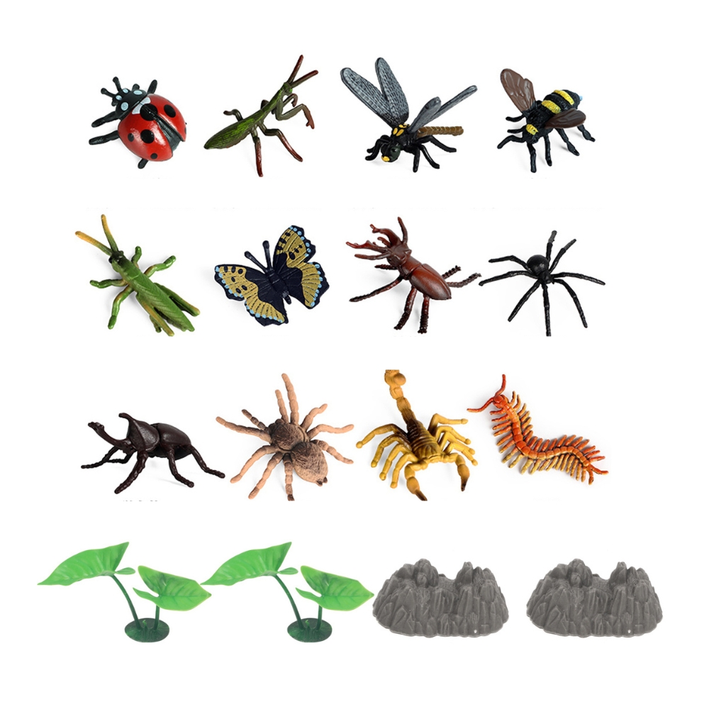 Setul include 16 figurine, diverse insecte, cum ar fi gandaci, furnici, fluturi, albine, paianjeni si multe altele.