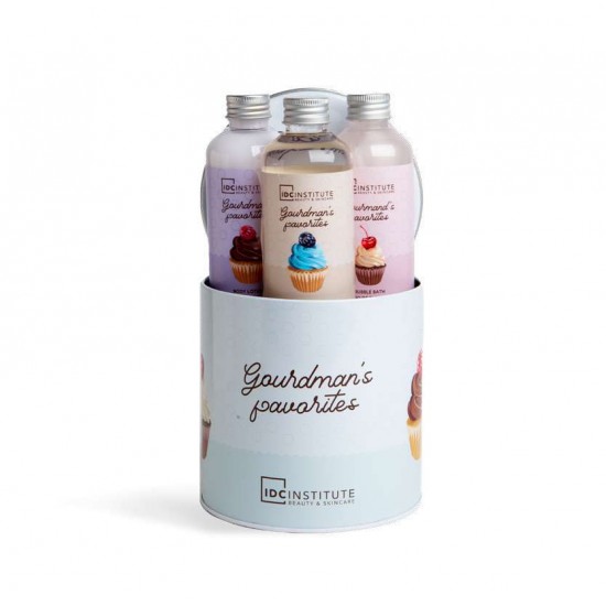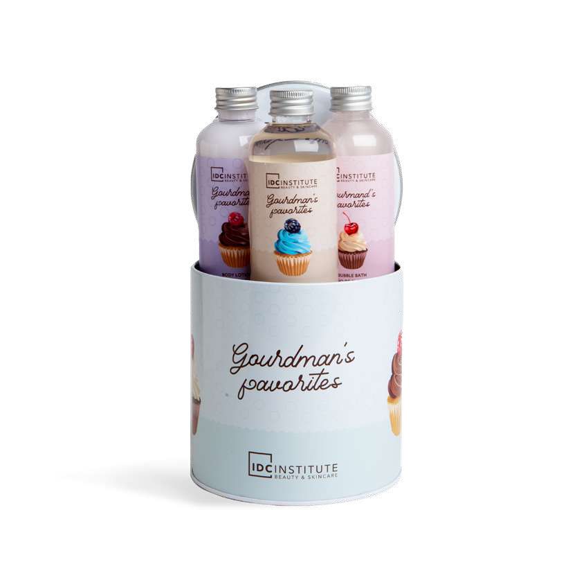 Set 3 produse pt ingrijire corporala Gourmand's Favourities IDC Institute in cutie metalica