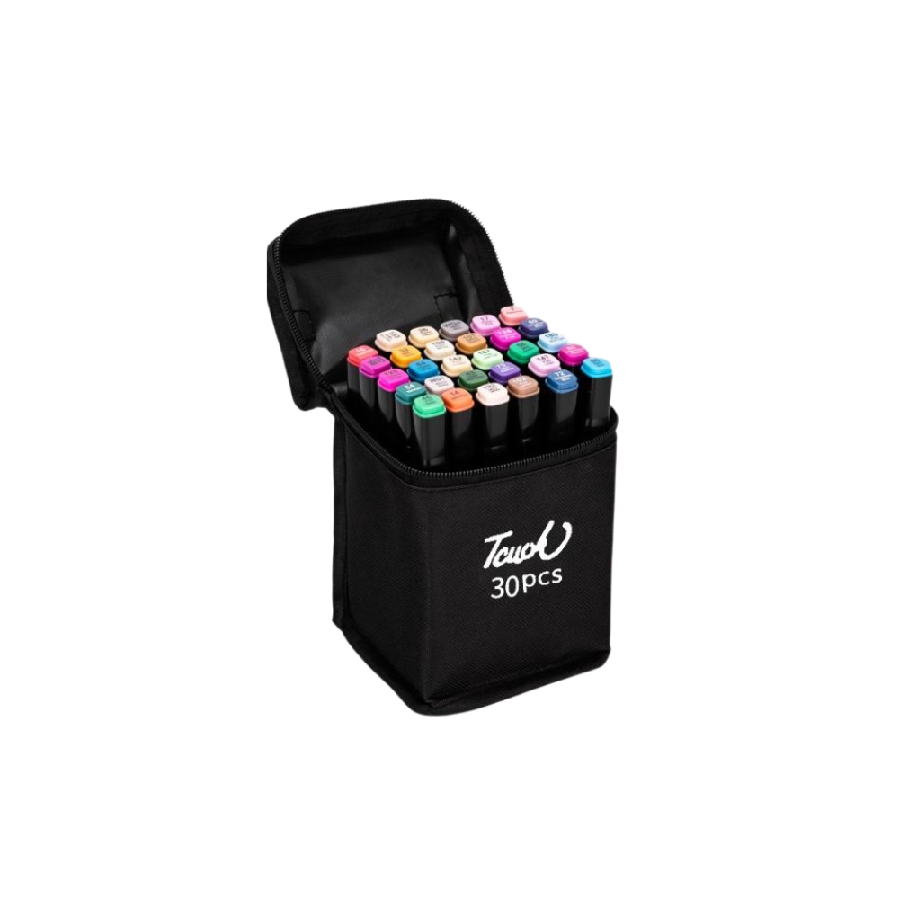 Acest set impresionant de 30 markere este perfect pentru artisti de toate varstele, oferind o varietate vasta de culori pentru a satisface toate nevoile creative.