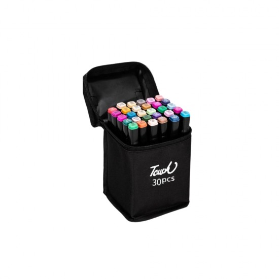 Markerele sunt organizate intr-o gentuta neagra eleganta, care este usor de transportat si ideala pentru pastrarea in ordine a tuturor markerelor.
