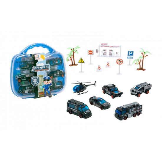 Set 6 masinute POLITIE, cu accesorii in valiza