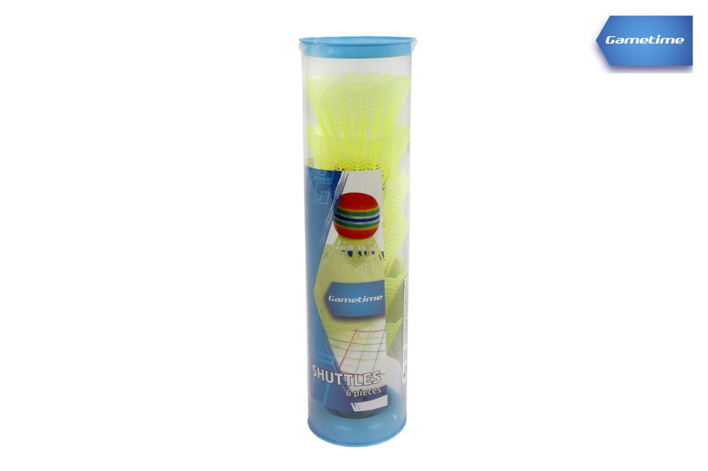 Fluturasi badminton Gametime, nylon galben, cap spuma, 6 bucati, in tub