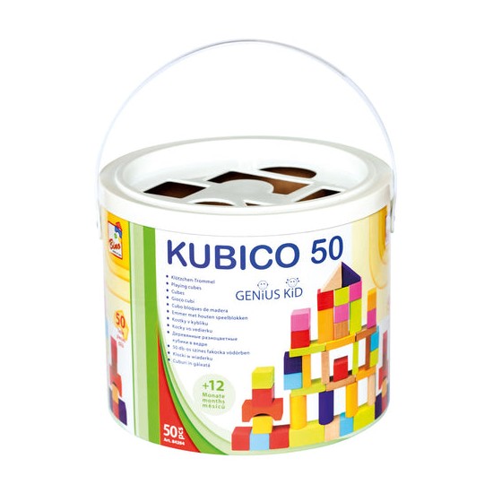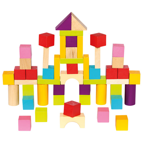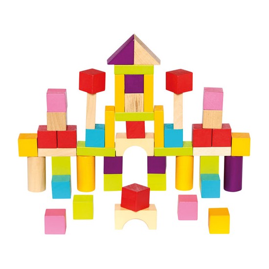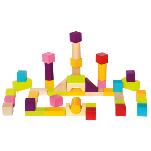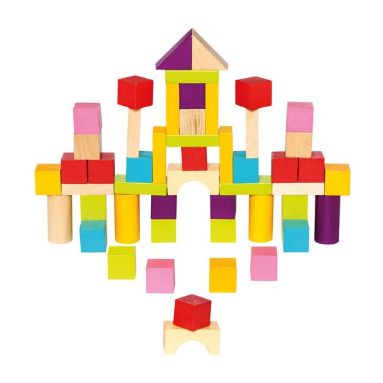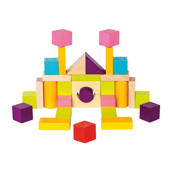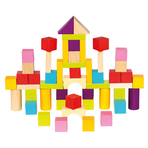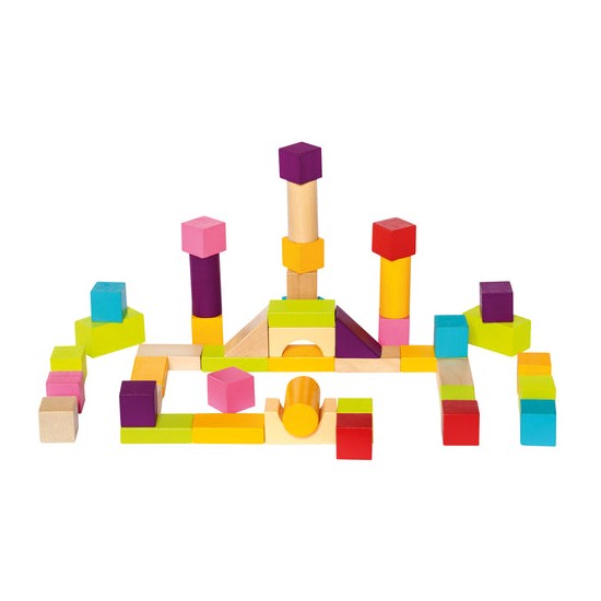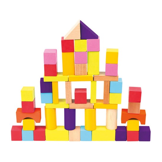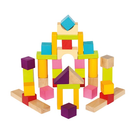 Set cuburi din lemn multicolore de construit, 50 buc.