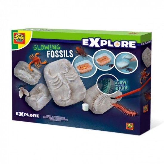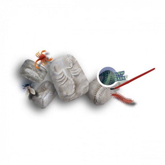 GLOWING FOSSILS EXPLORE este un set destinat tinerilor exploratori care vor fi interesati sa-si petreaca timpul liber studiind resturile de insecte!